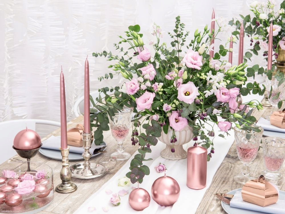 Ozdobne świece pływające w kolorze różowego złota to uniwersalna, piękna i elegancka dekoracja.