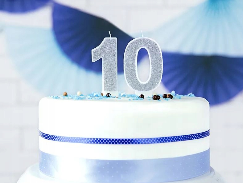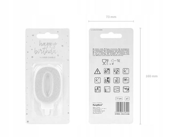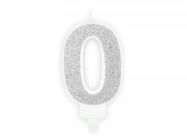 Świeczka urodzinowa świeczki cyferki numerki 0 SREBRNA srebro