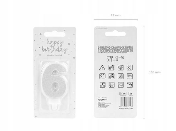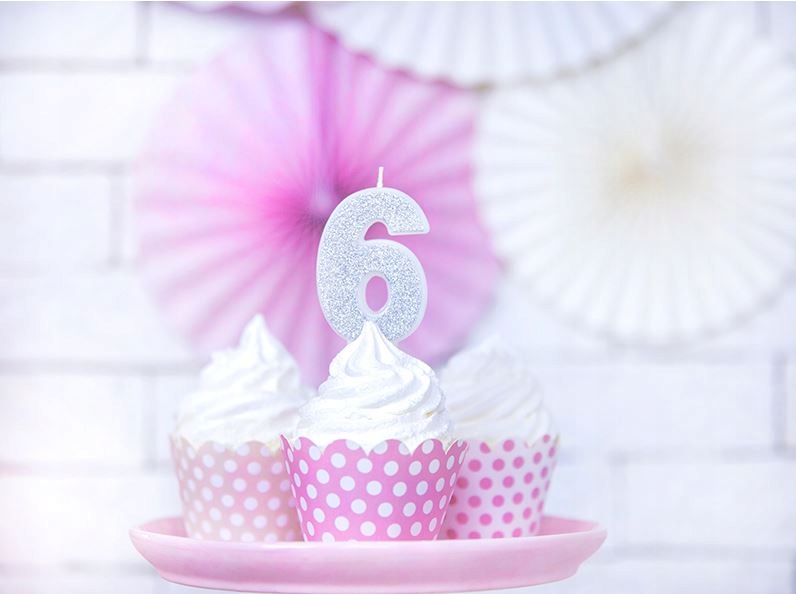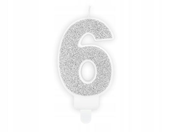 Świeczka urodzinowa świeczki cyferki numerki 6 SREBRNY srebro