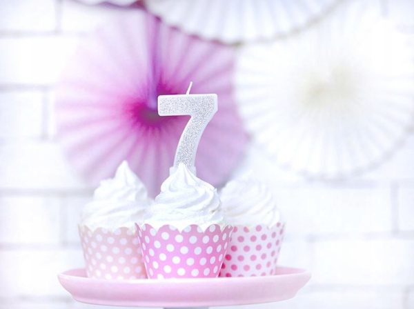 Świeczka urodzinowa świeczki cyferki numerki 7 SREBRNY srebro