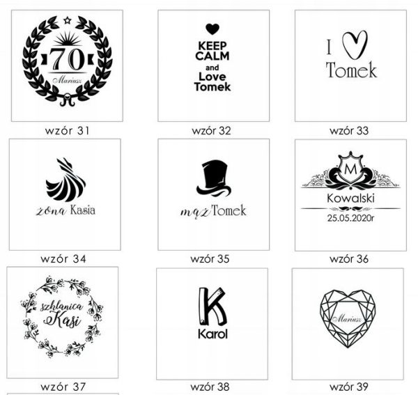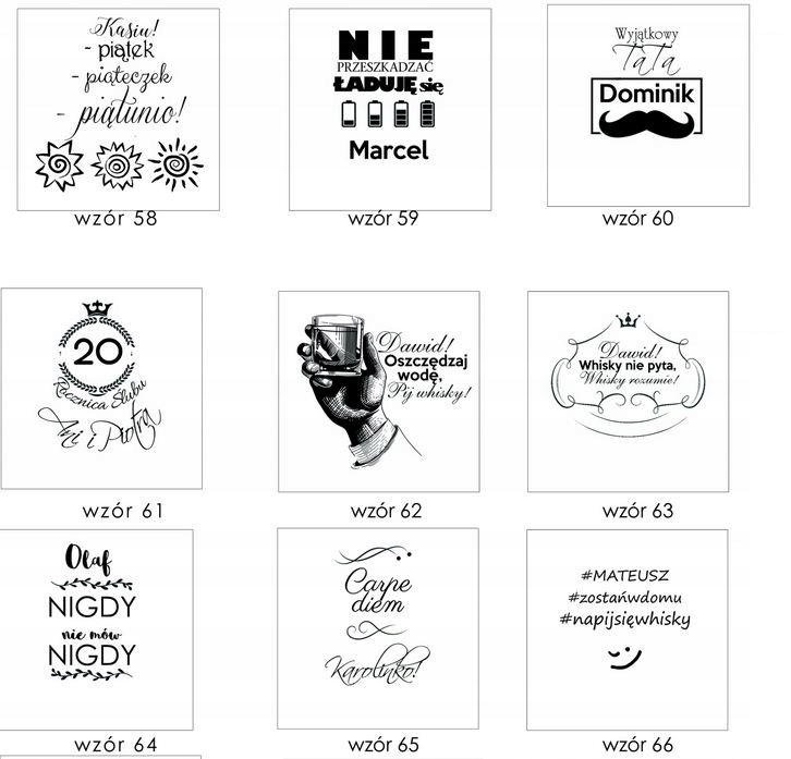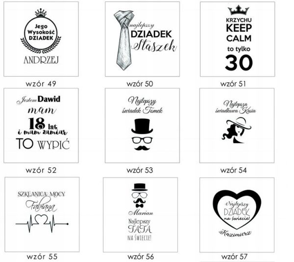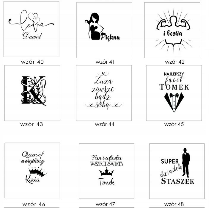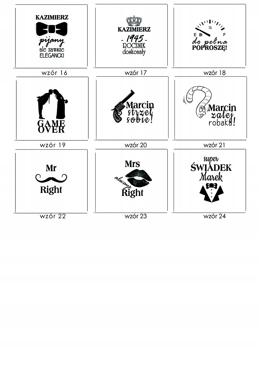 • Do każdego naszego wzoru możesz podać własny tekst.