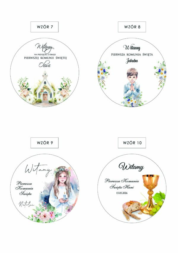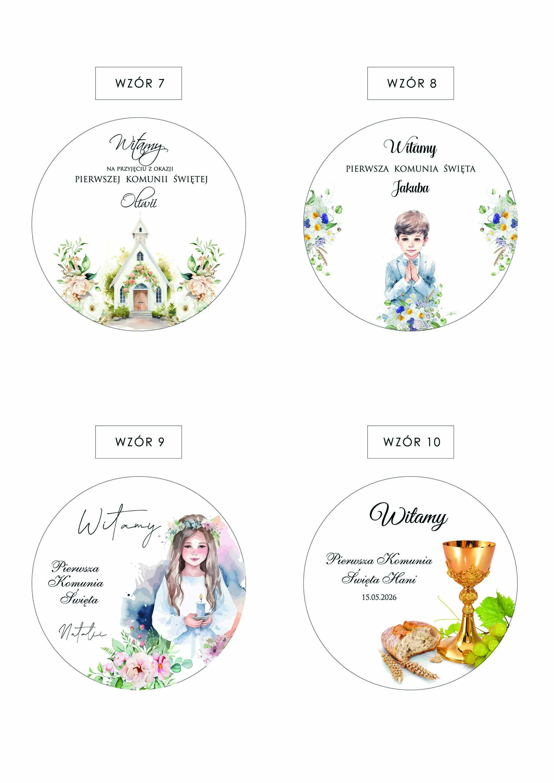 – wzór nr 1 “Witamy na przyjęciu z okazji Pierwszej Komunii Świętej Julki 26.05.2027”
