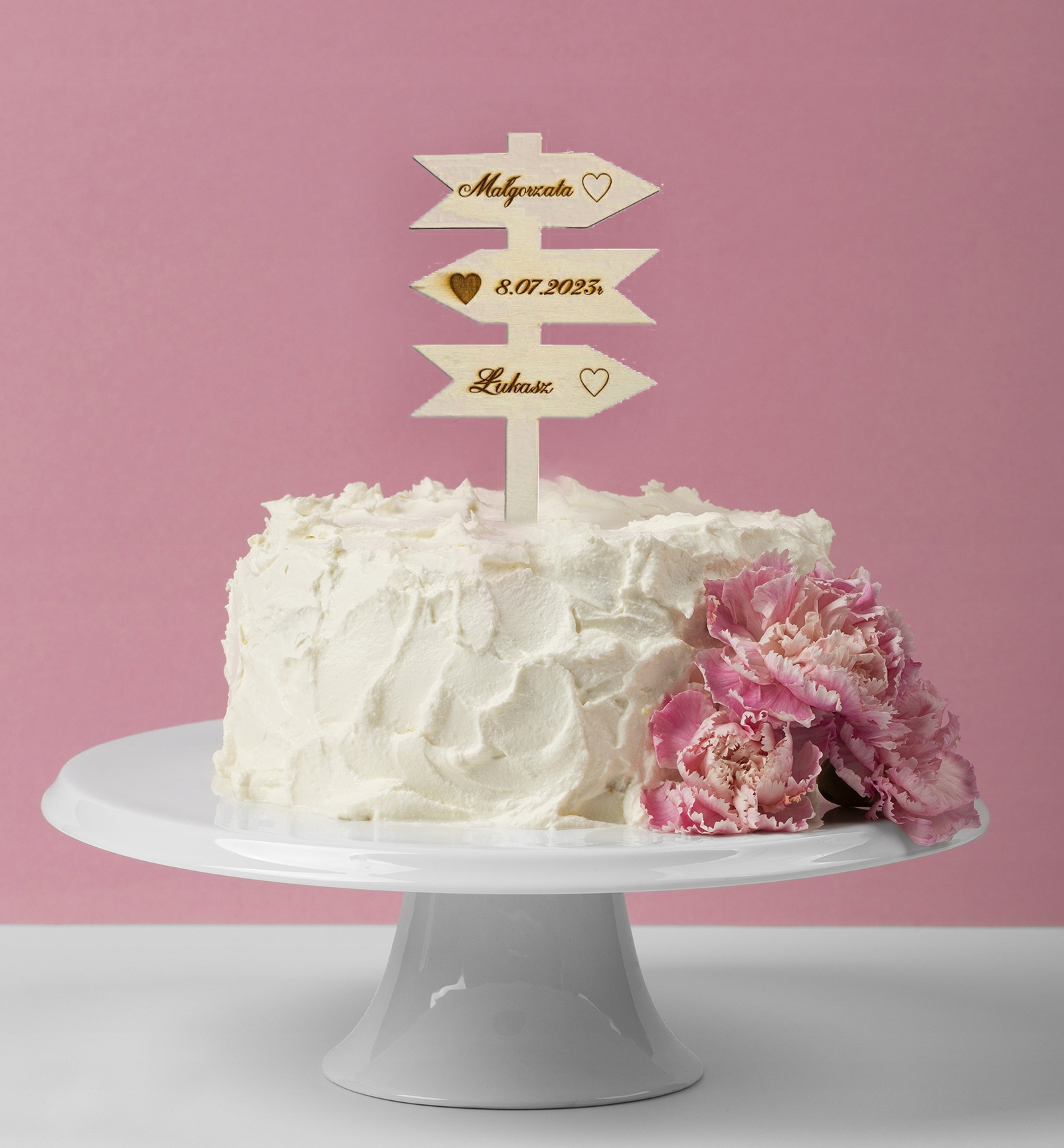 Aby jeszcze bardziej sprawić by ten dzień był wyjątkowy uświetnij go pięknym tortem zwieńczonym cudownym drewnianym topperem. Nasz topper pięknie ozdobi tort weselny lub rocznicowy. Wybierz go, aby uczcić ten szczególny dzień i uczynić go jeszcze bardziej wyjątkowym!