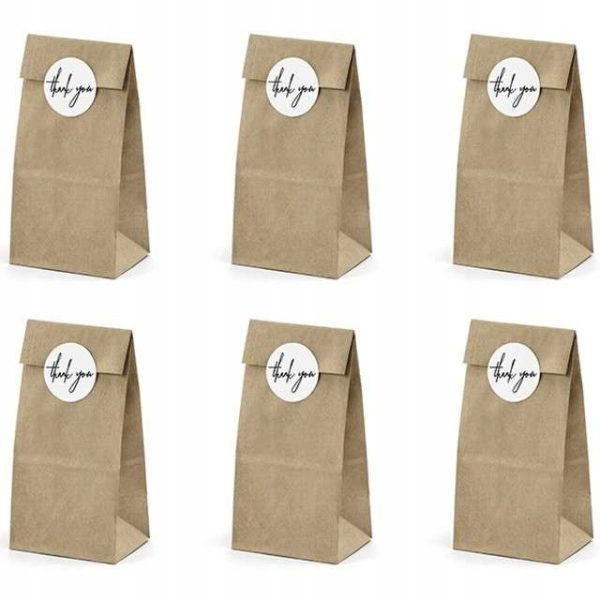 ✔️ Torebki na słodycze “Thank You”, kraft, Partydeco, 6 szt