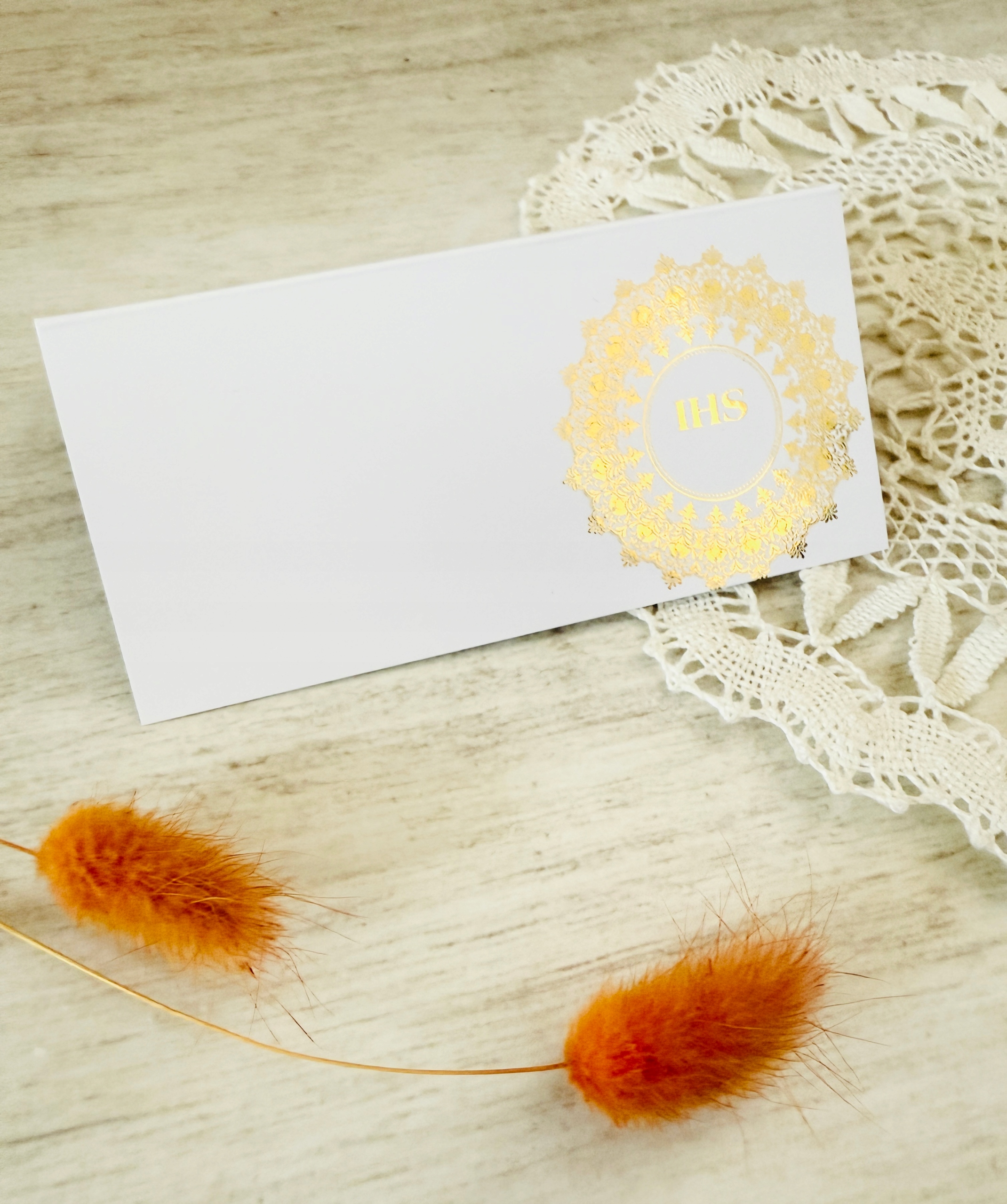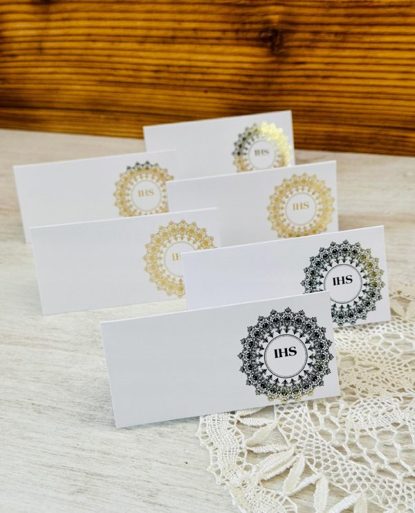 ✅ winietki złocone folią – grafika HOSTIA i napis “IHS” z połyskiem!