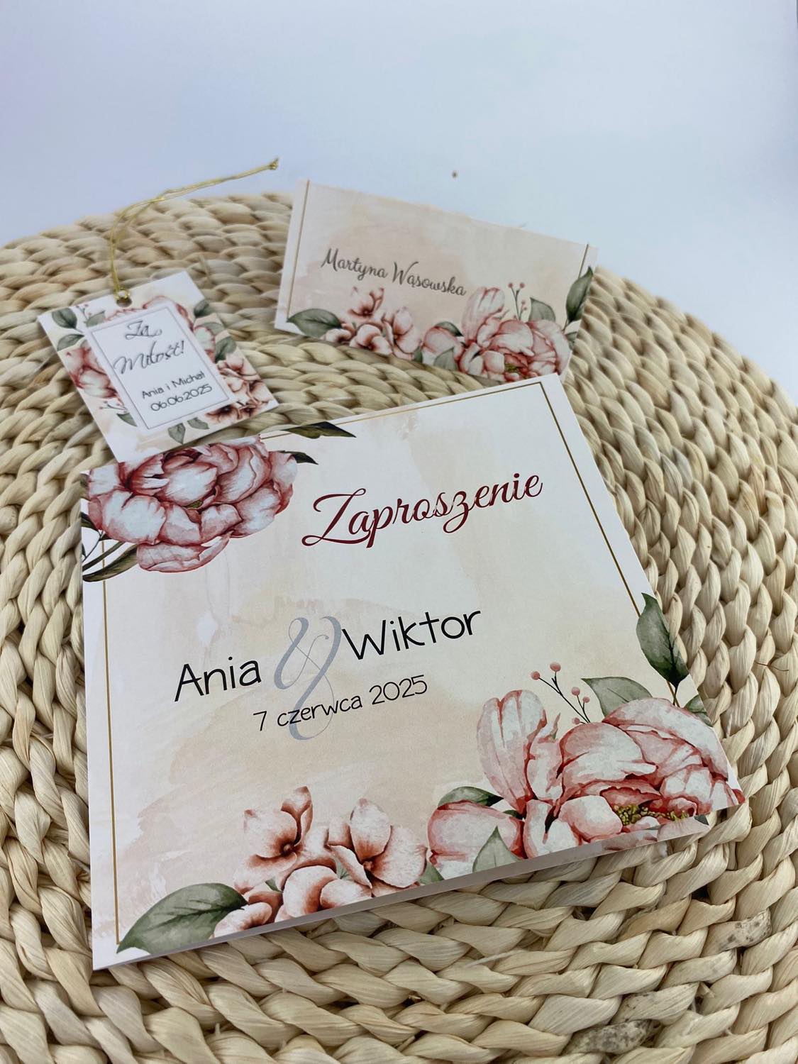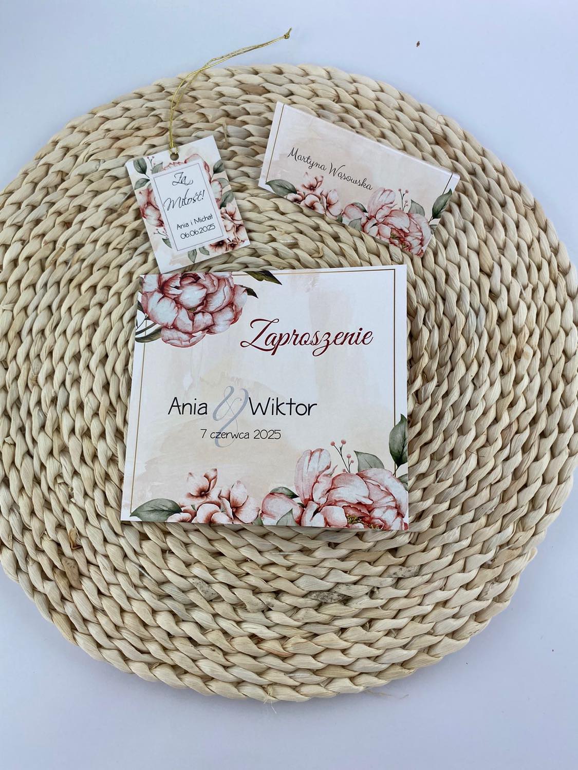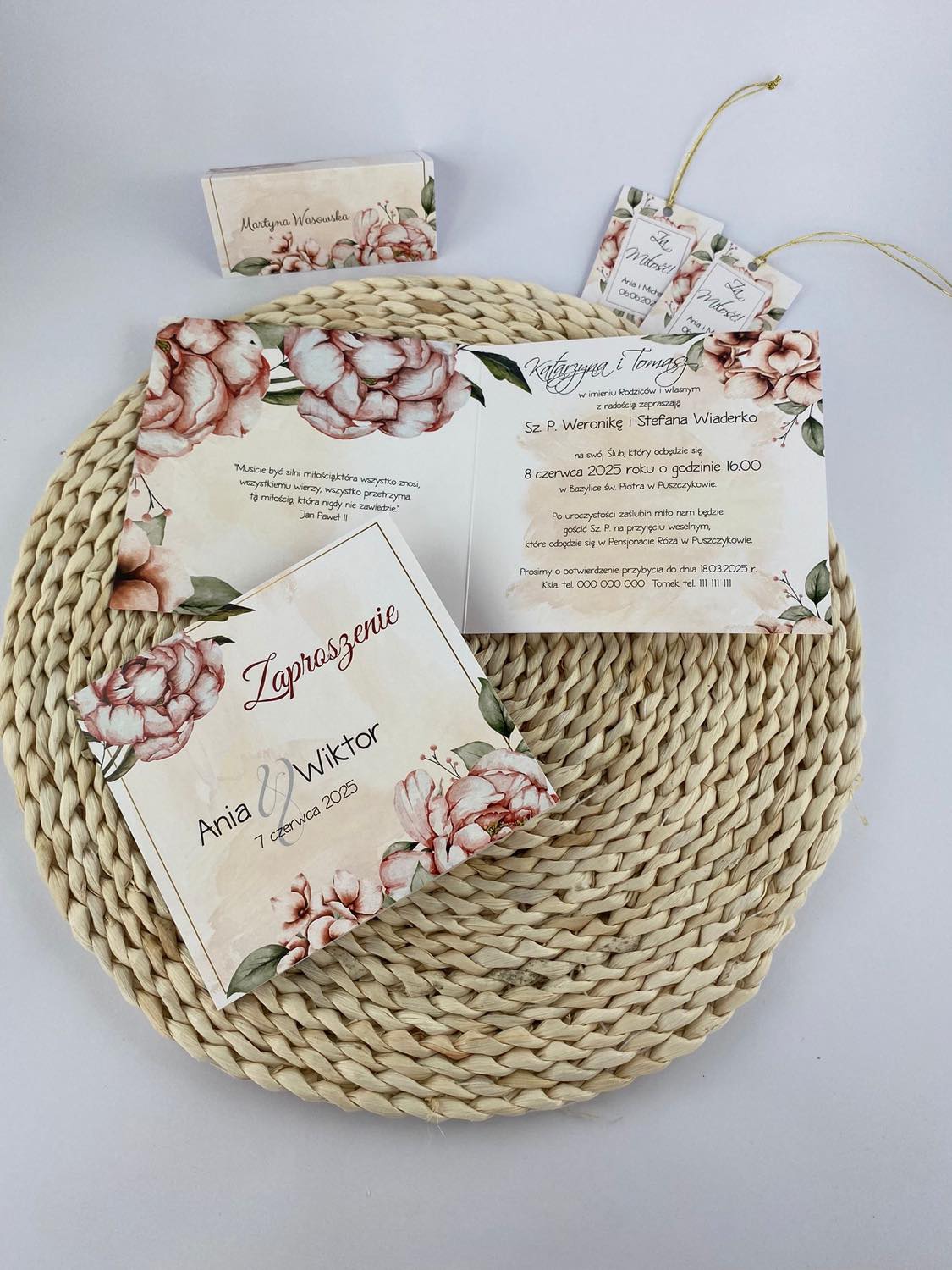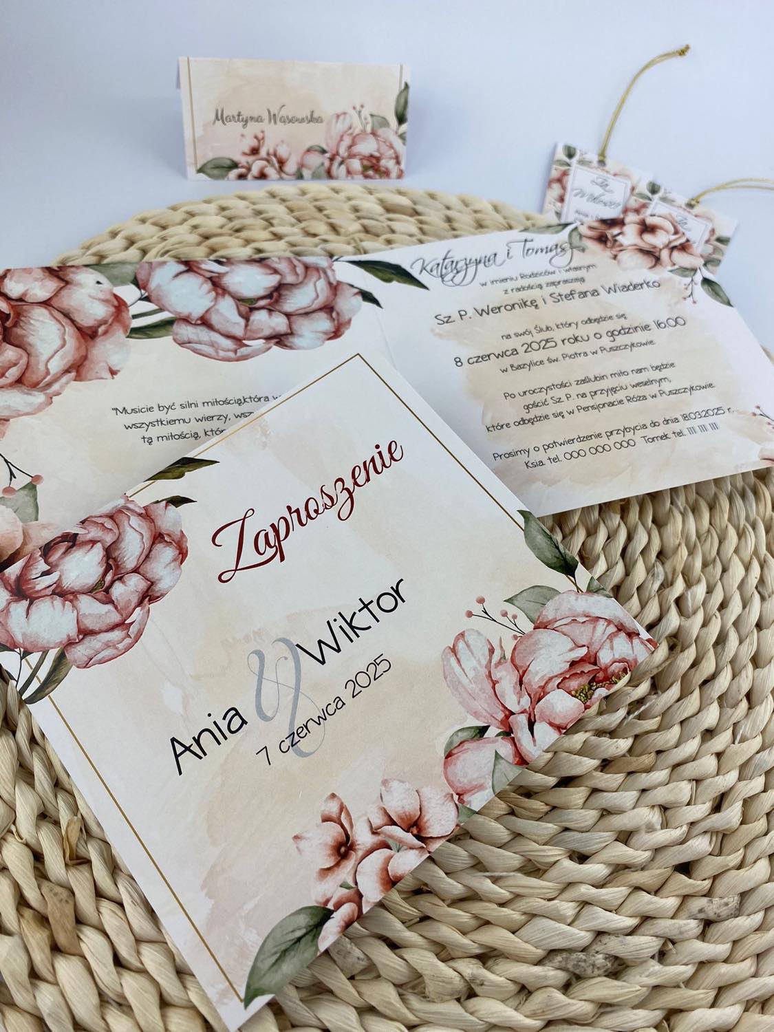 Zaproszenie ślubne – wzór 2 – różowa piwonia