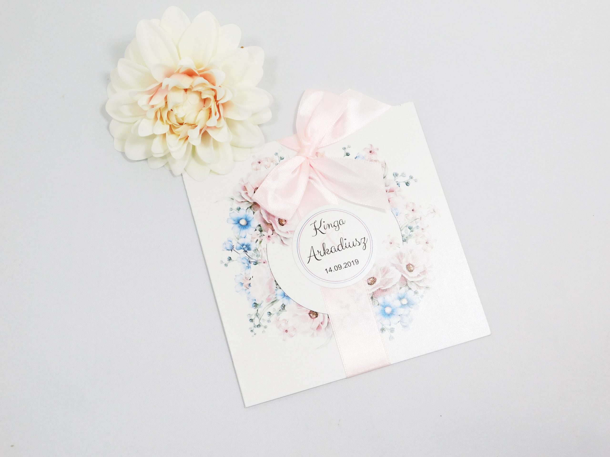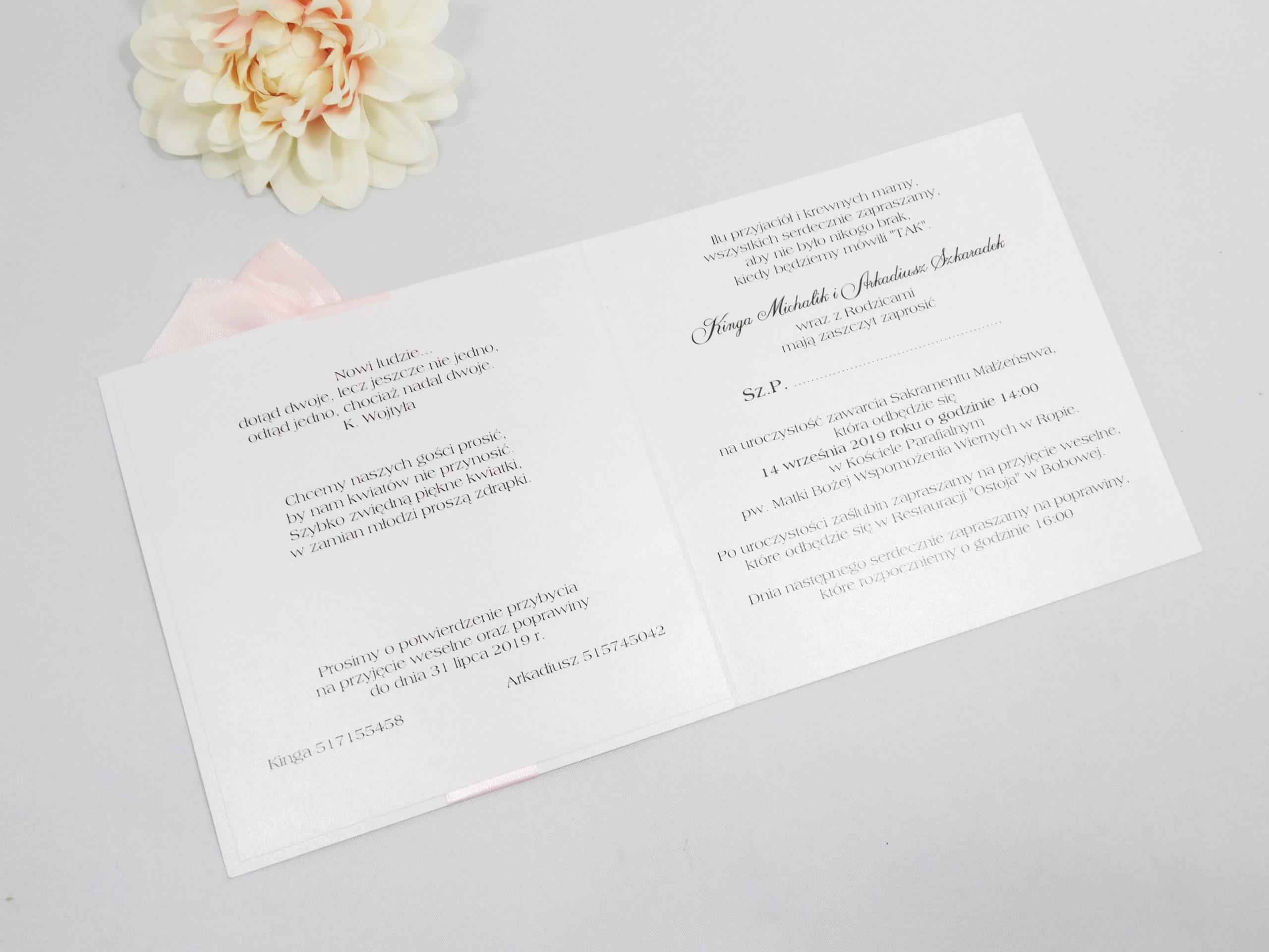Eleganckie zaproszenie Ślubne wykonane na sztywnym kartonie.