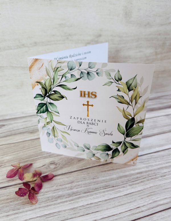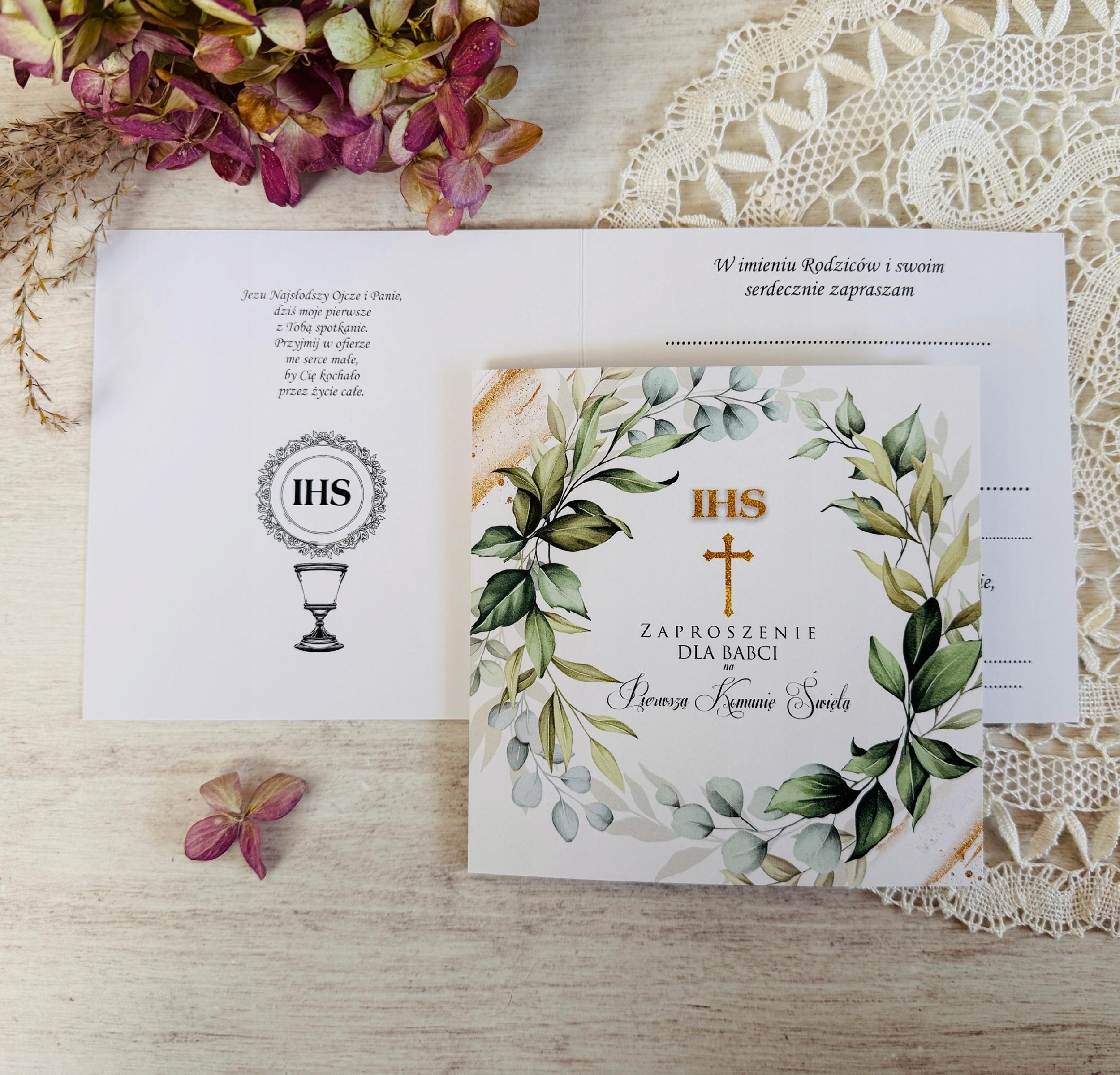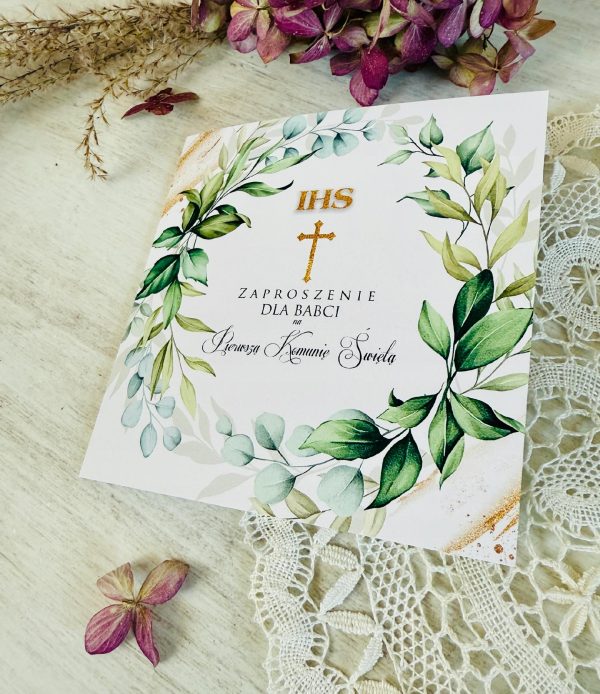Na tej aukcji przedstawiamy ZAPROSZENIE NA PIERWSZĄ KOMUNIĘ ŚWIĘTA DEDYKOWANE BABCI.
