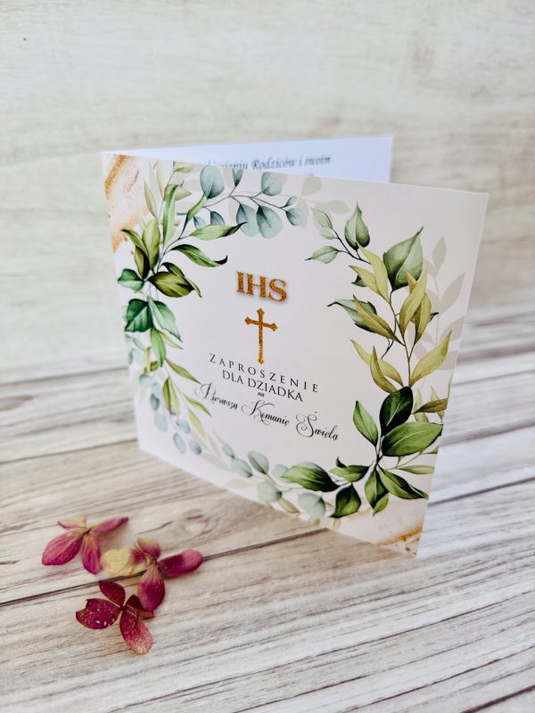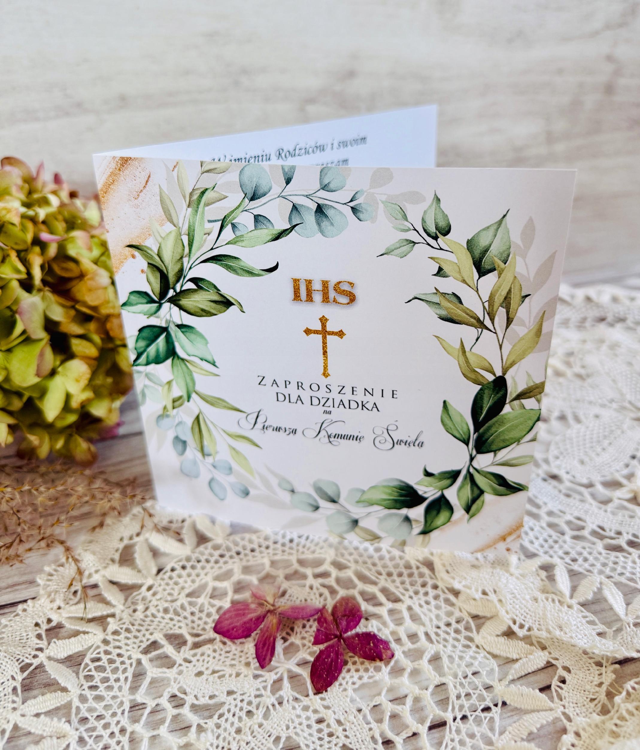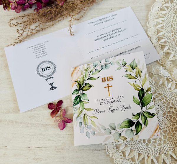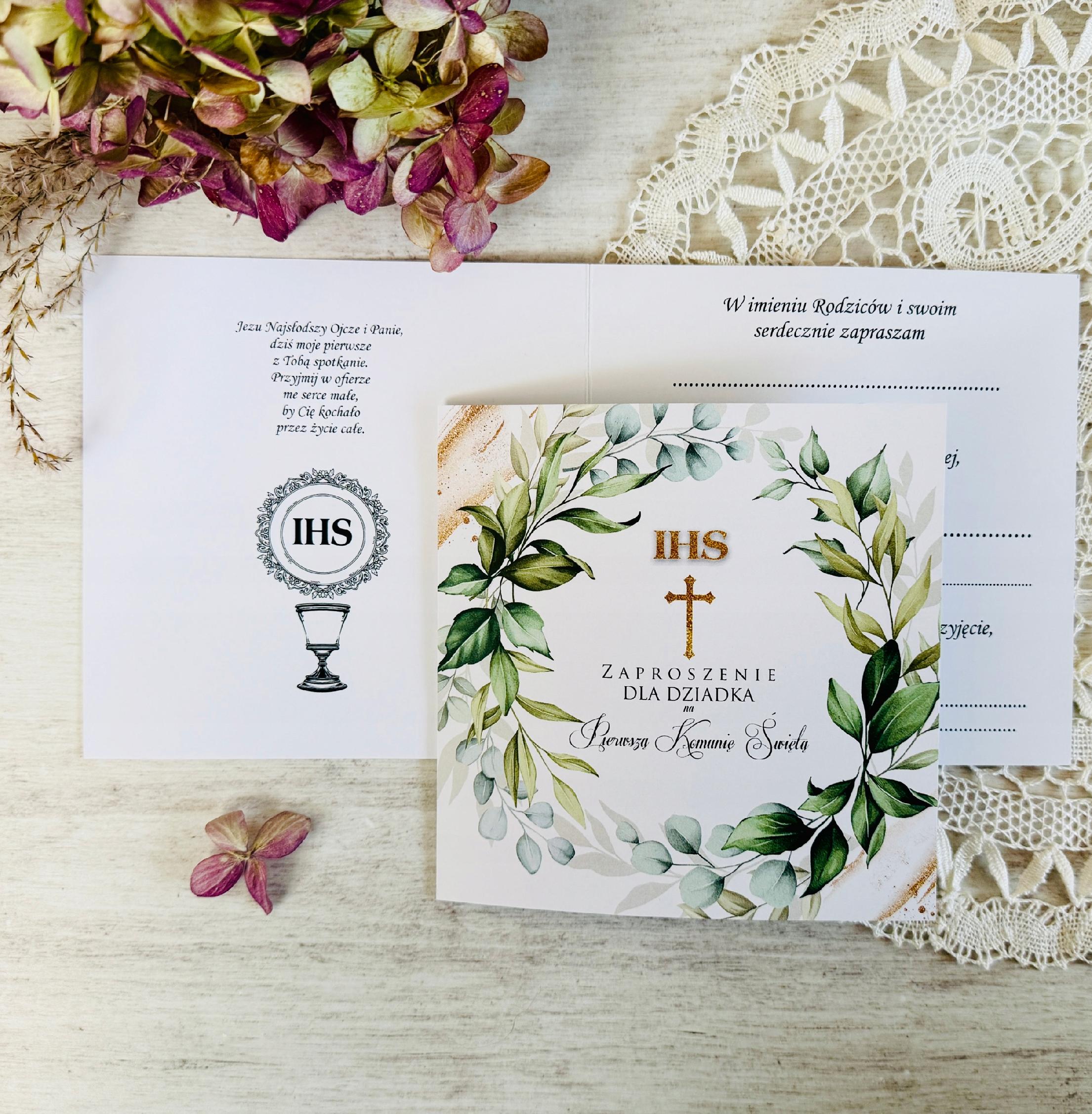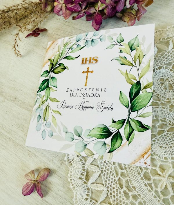 Na tej aukcji przedstawiamy ZAPROSZENIE NA PIERWSZĄ KOMUNIĘ ŚWIĘTA DEDYKOWANE DZIADKOWI.