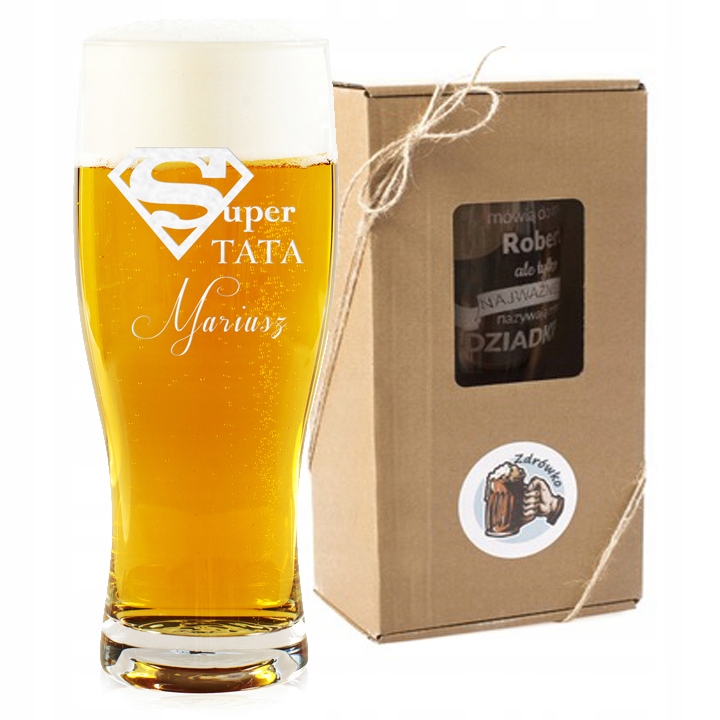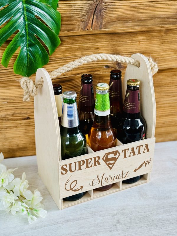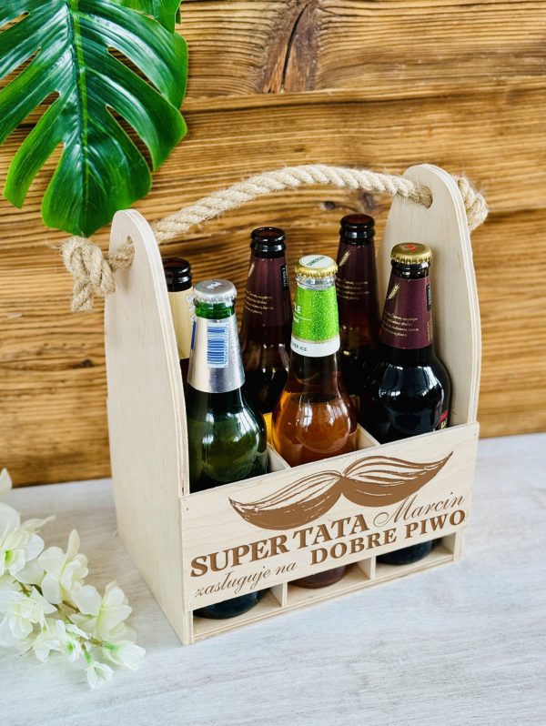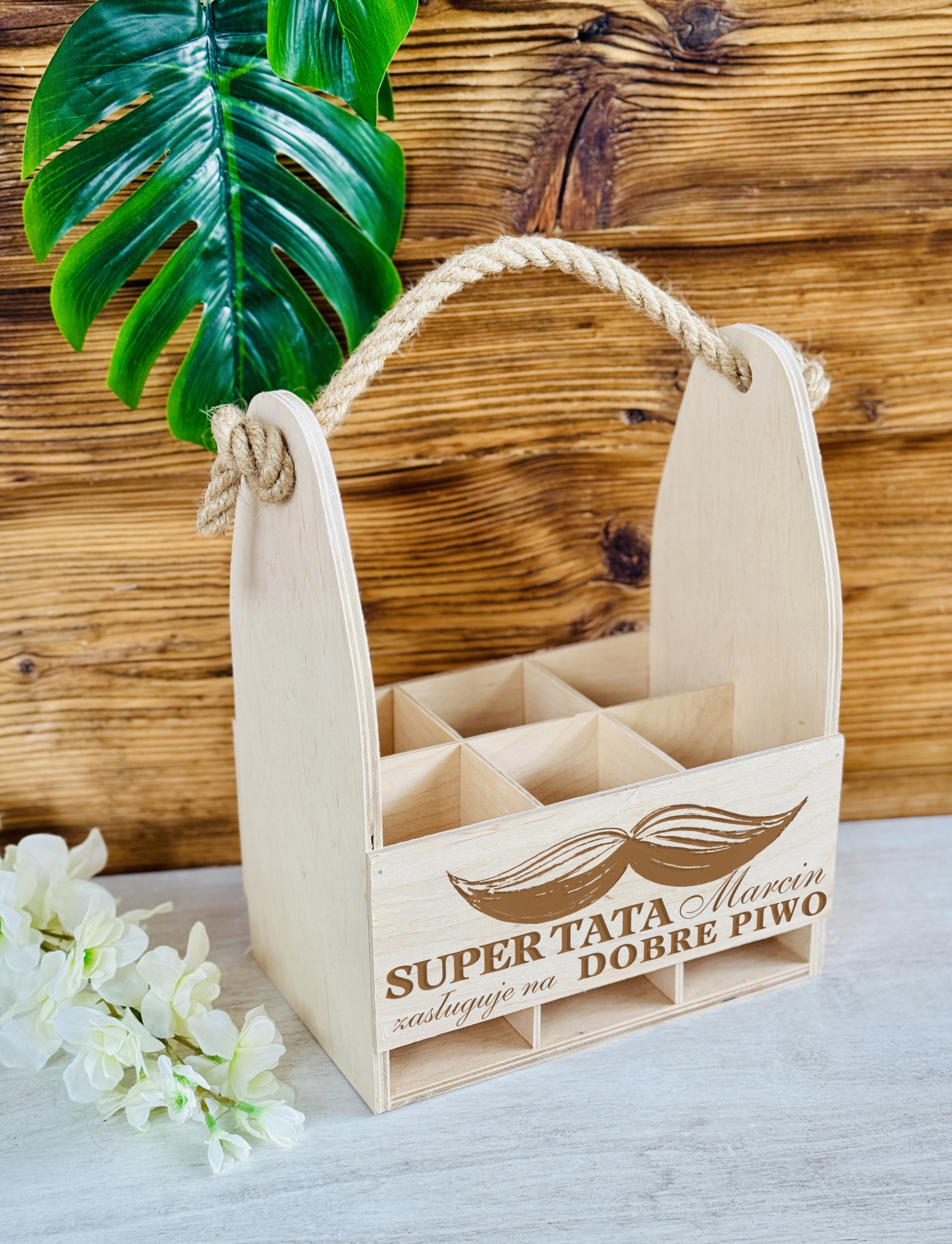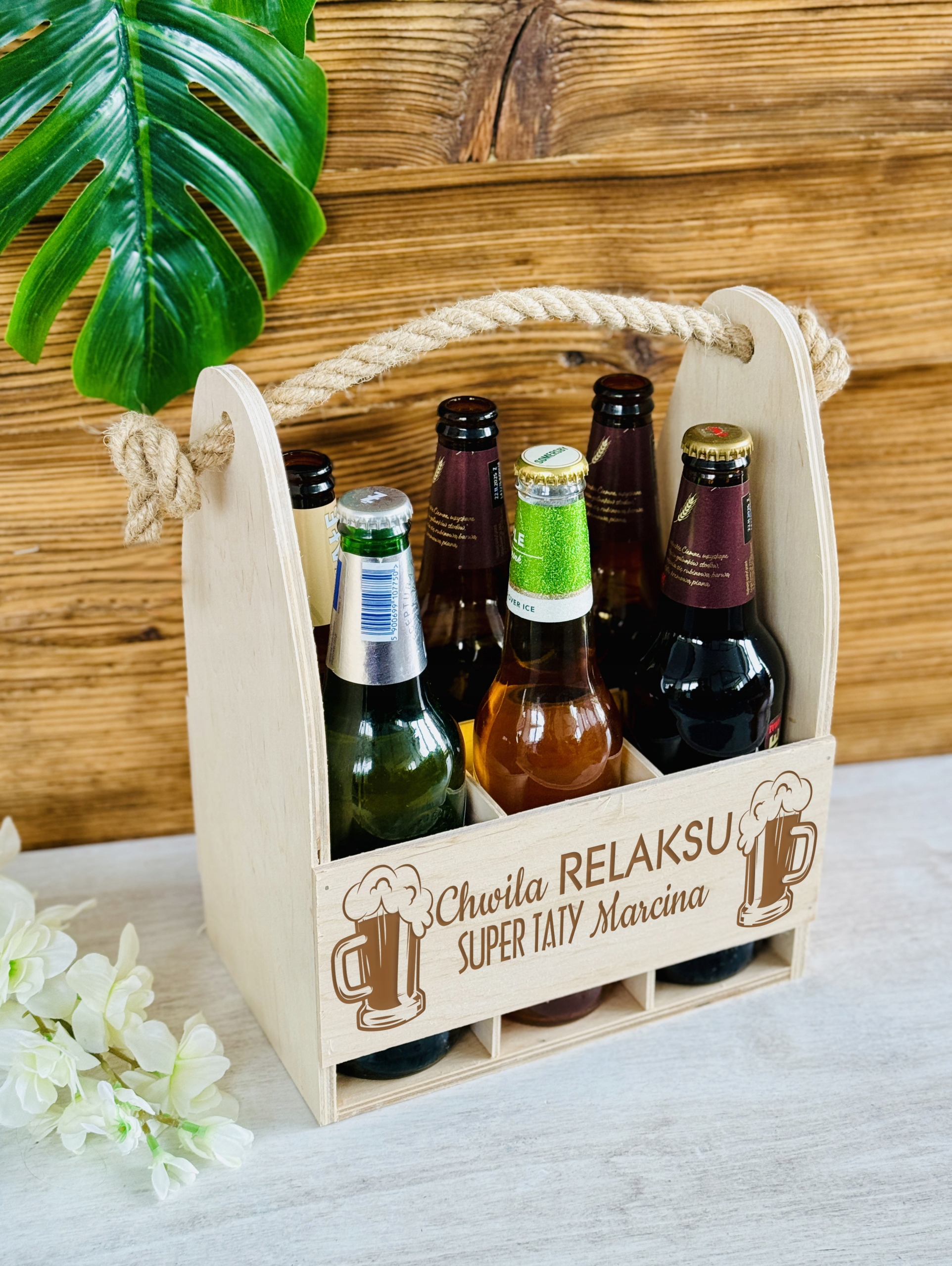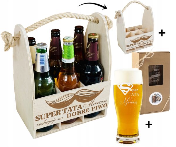 ZESTAW prezent na DZIEŃ TATY upominek SKRZYNKA NA PIWO sznur + KUFEL GRAWER