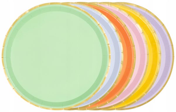 Talerzyki papierowe ze złotymi brzegami, mix kolorów, średnica ok. 21 cm