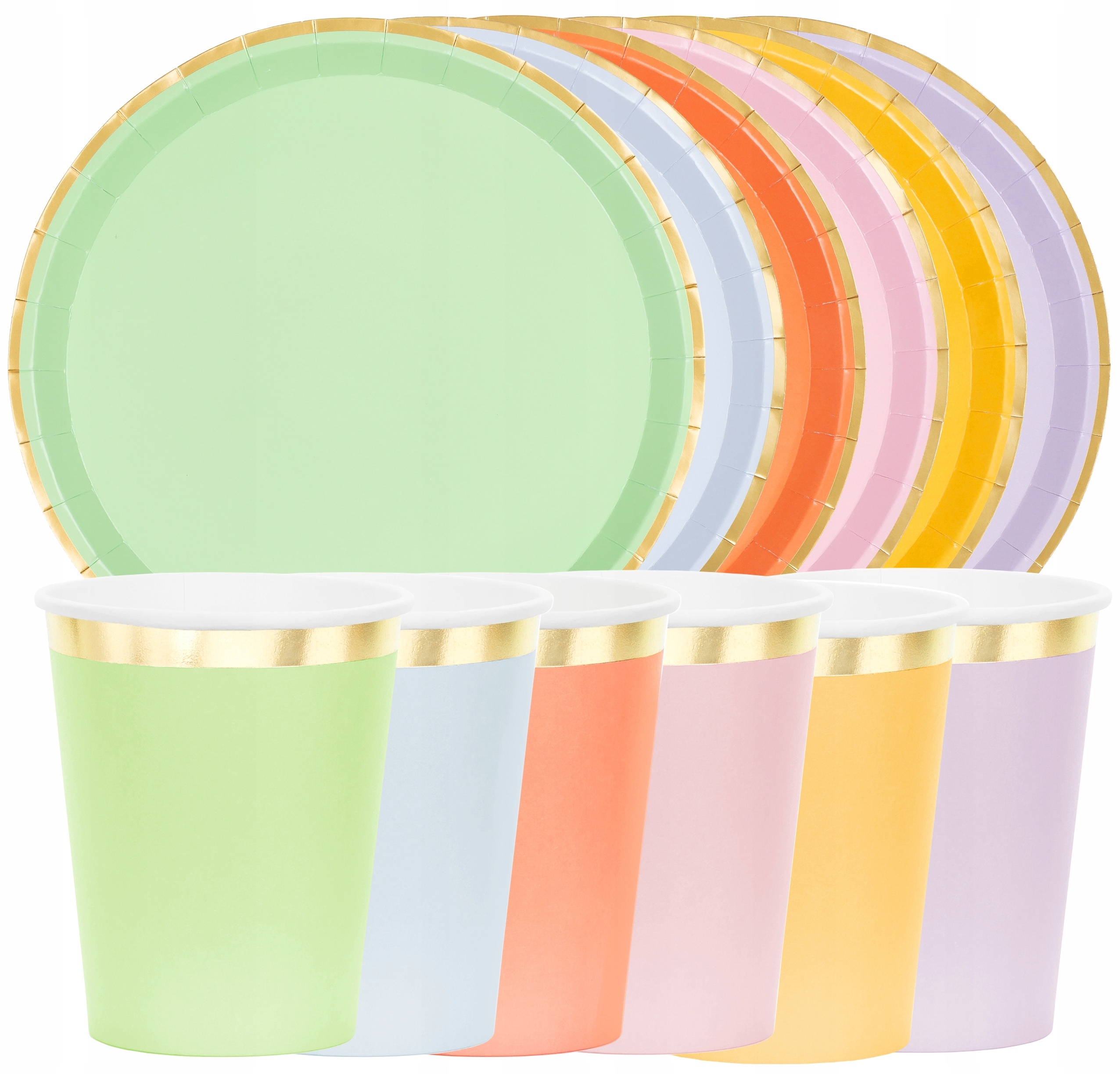 Zestaw Talerzyki + Kubeczki kolorowe ze złotymi brzegami PARTY