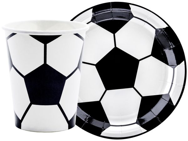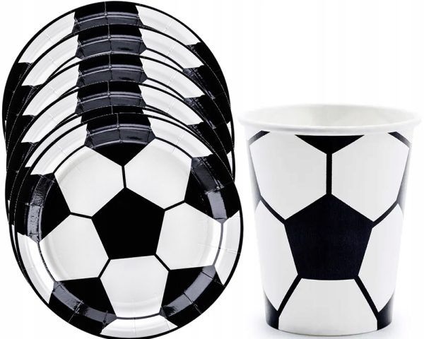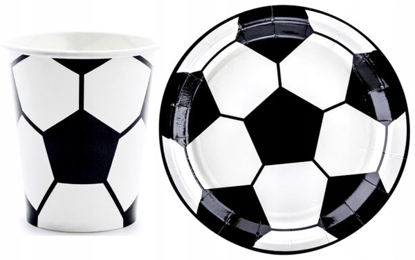zestaw kubeczki Talerzyki papierowe na Piłkarskie Urodziny lub Party! z nadrukiem piłki.