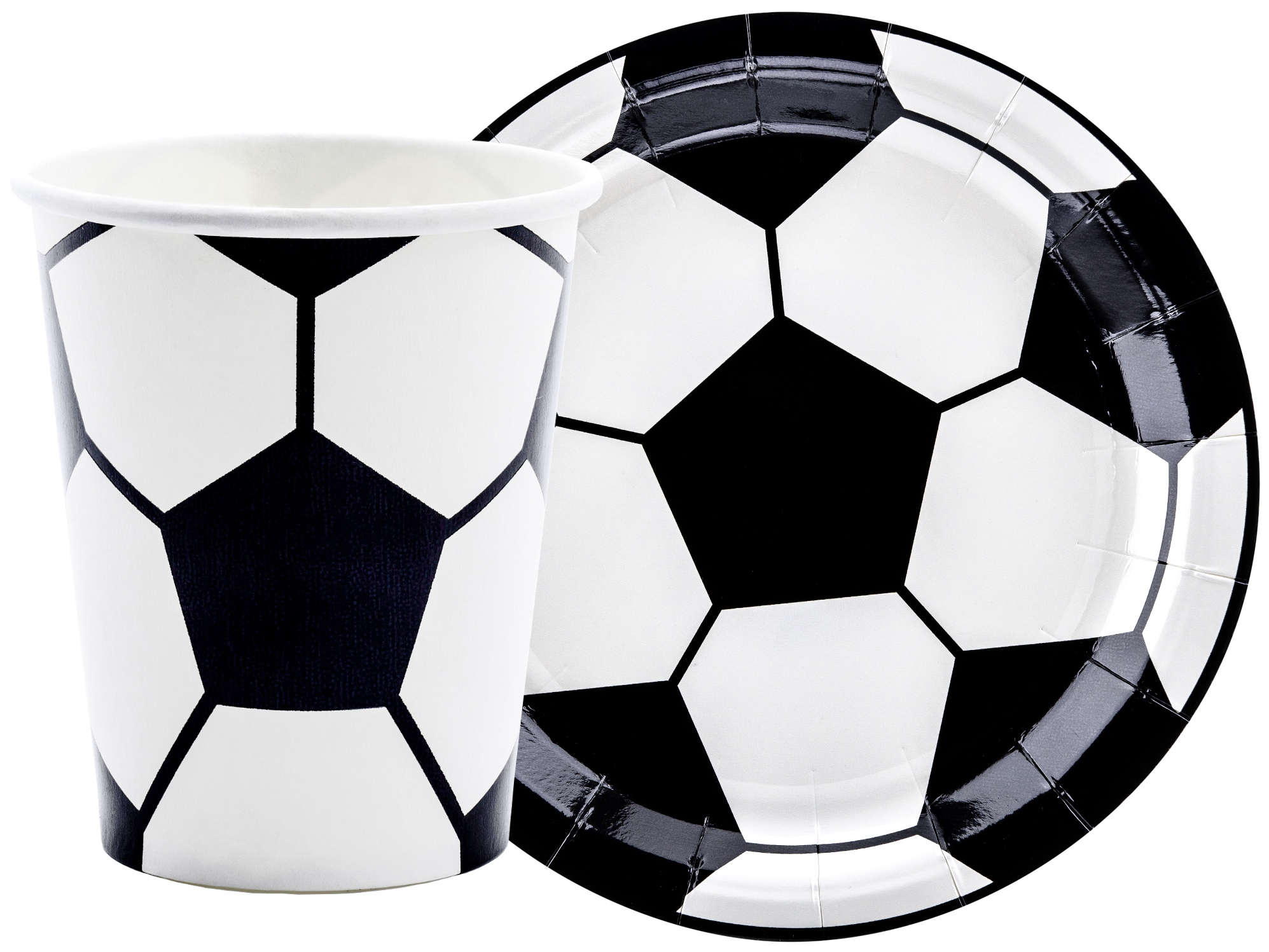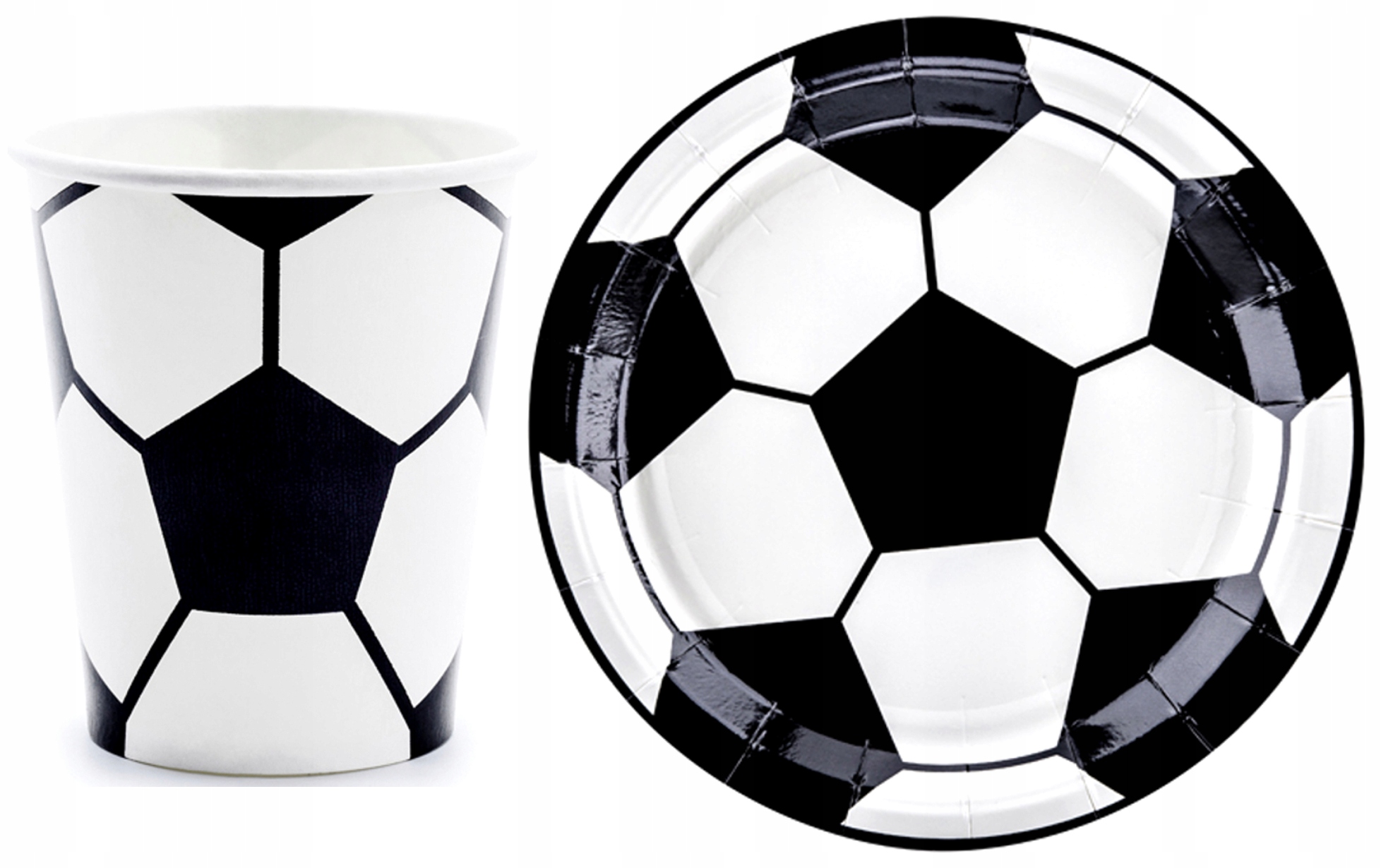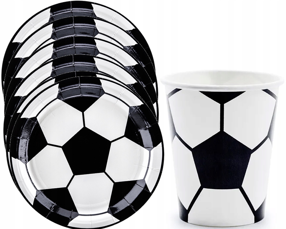 • kubeczki Talerzyki papierowe z nadrukiem piłki nożnej.