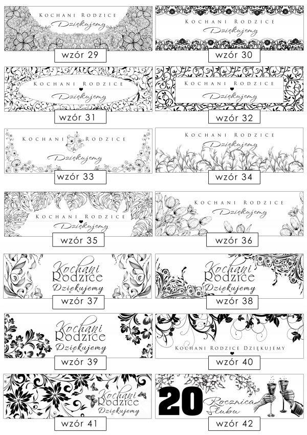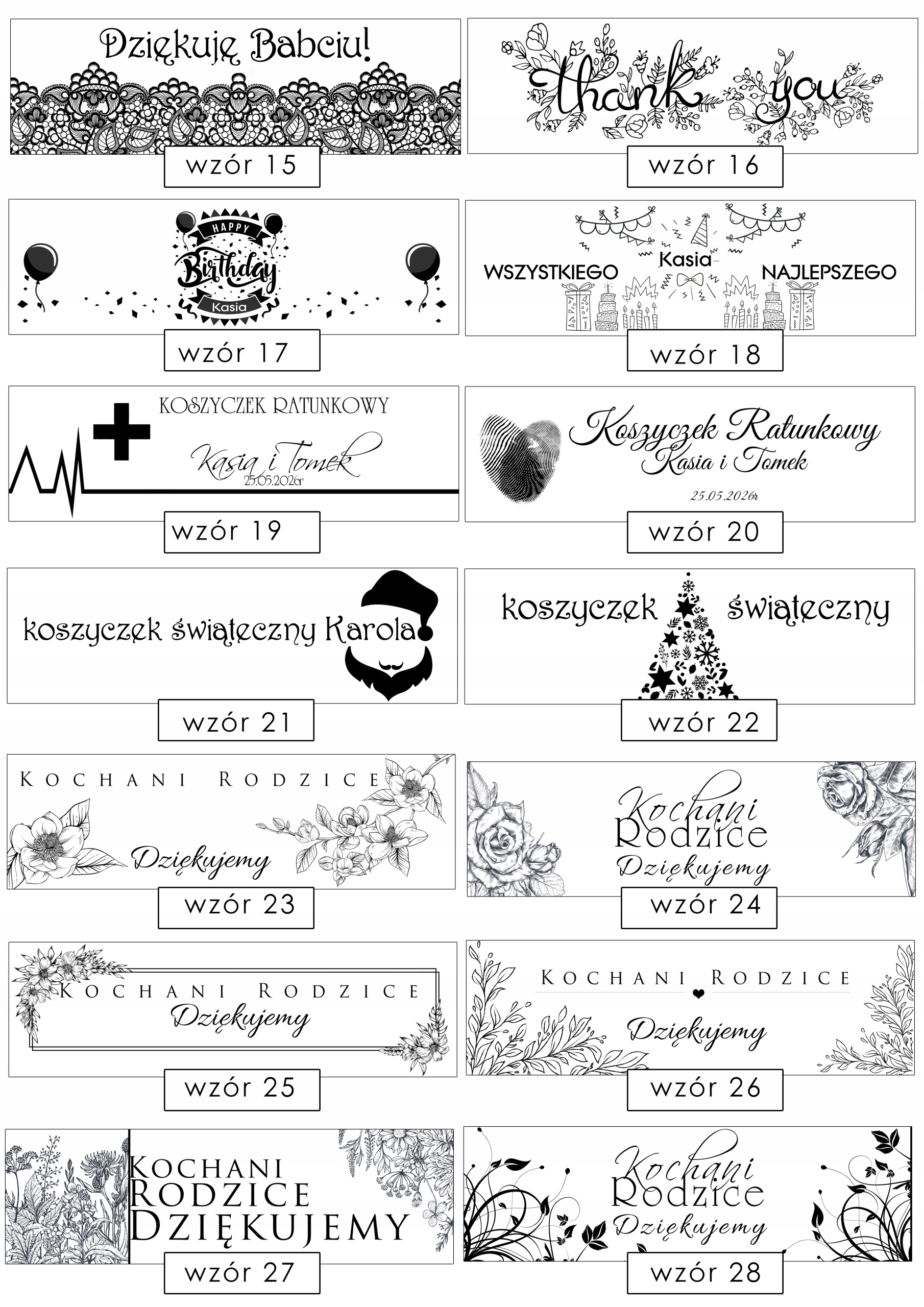 • jeżeli chcecie własny tekst prosimy poinformujcie nas o tym np. skrzynia: wzór 9, Kochana Mamo Dziękujemy, Ania i Łukasz, 26.08.2026r. filiżanki: Mama Kasia, Tata Andrzej