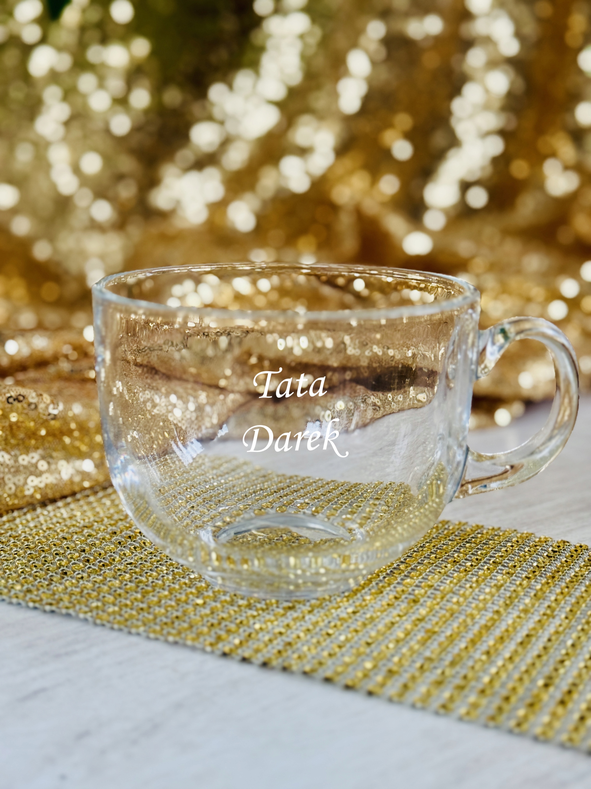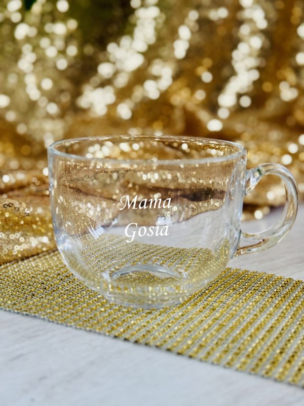 ✅Wysokiej jakości szklana duża filiżanka z laserowym grawerem. Grawer wykonany na najwyższej jakości urządzeniach. Grawer jest wyczuwalny pod ręką, delikatnie zagłębiony. Jest to wspaniała alternatywa dla typowych podarków.  Nigdy nie zetrze się, będzie wspaniałą pamiątką na lata.