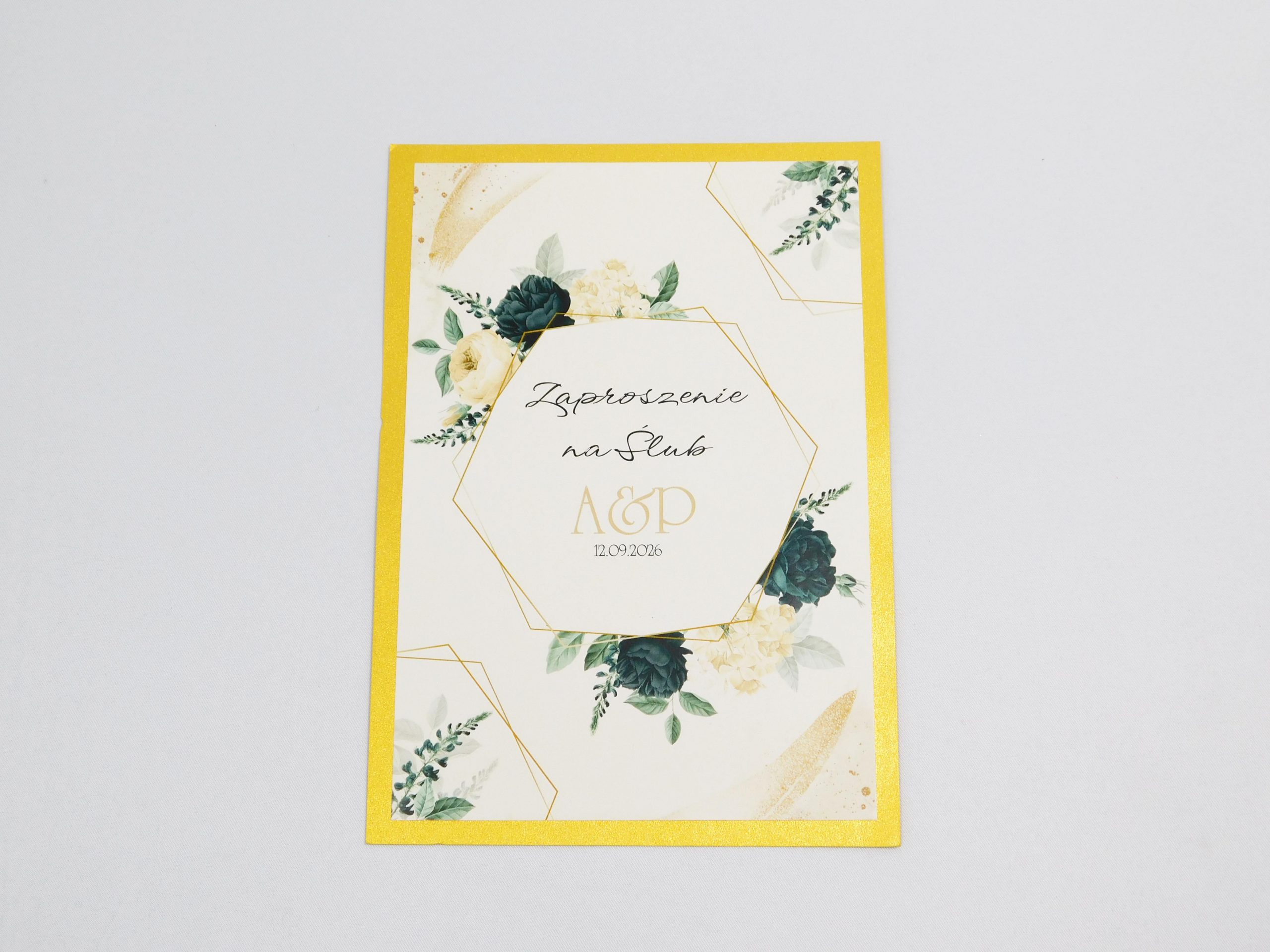 Eleganckie zaproszenie Ślubne wykonane na sztywnym kartonie.