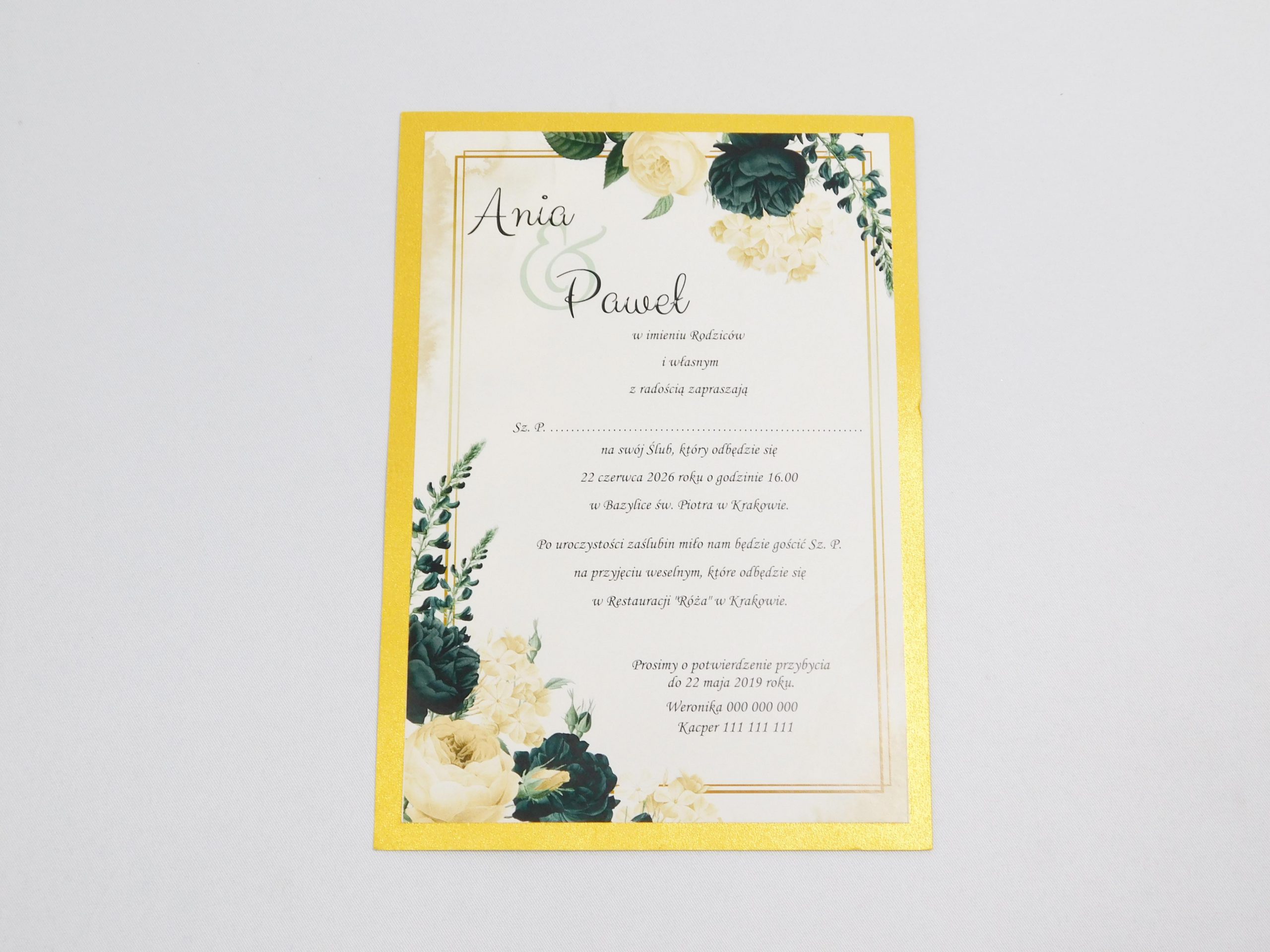 – zaproszenie z pełną personalizacją (na zewnątrz, wewnątrz łącznie z listą zaproszonych osób